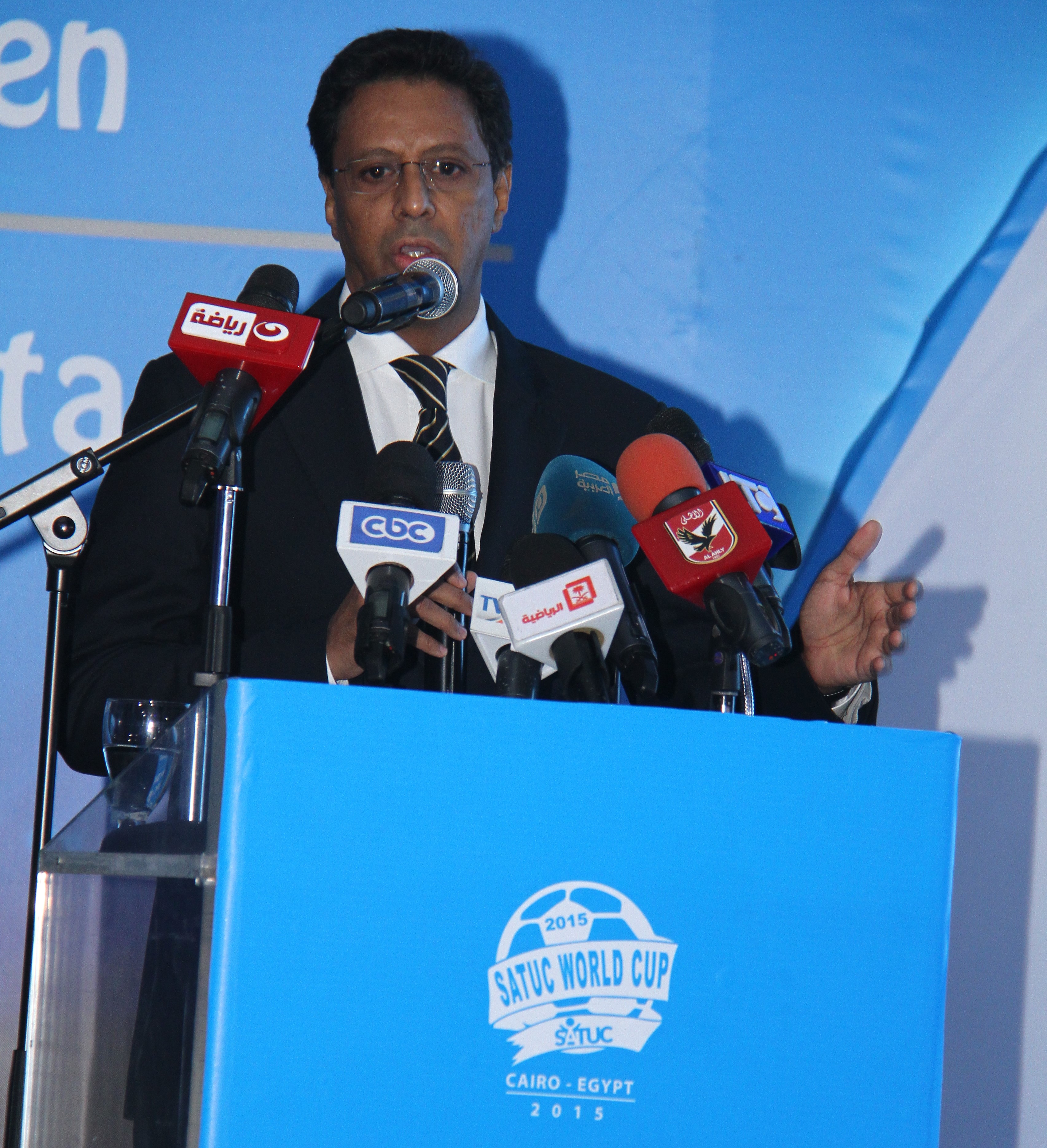 “I would like to start by thanking everyone in this room and many others who were not able to join us. The SATUC World Cup is a dream that has been made real because of the astonishing vision, work, and generosity of so many people who have partnered with us to make this day happen. We thank our sponsors and ambassadors; our volunteers and our guests; the media and the logistical teams, and all the charities, organizations, and footballing legends from around the world who have helped us to organize the trials and the teams. And we thank the players and their representatives for traveling to Cairo to join us in this first-ever SATUC World Cup.”